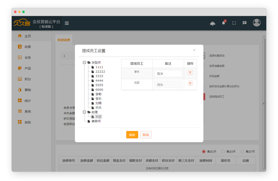 更高效的员工管理,有效激发员工动力,经营更省心;多种模式消费提成,每笔业务提成自动结算,全面激发员工潜力。