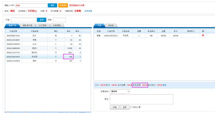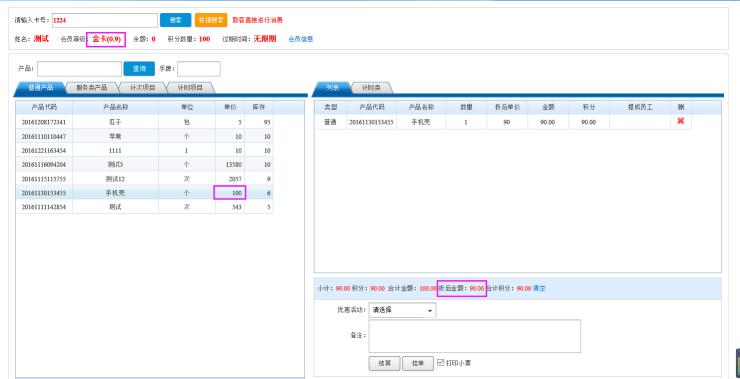 6.再次进行消费,可以看到该会员已经可以享受会员等折扣,设置完成。