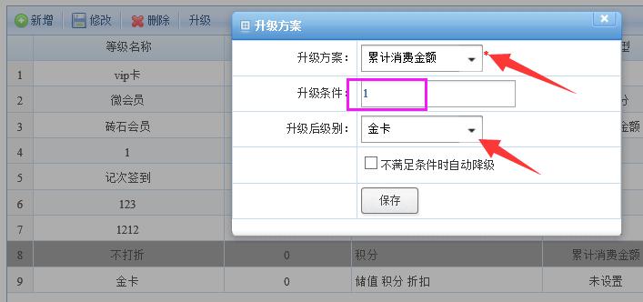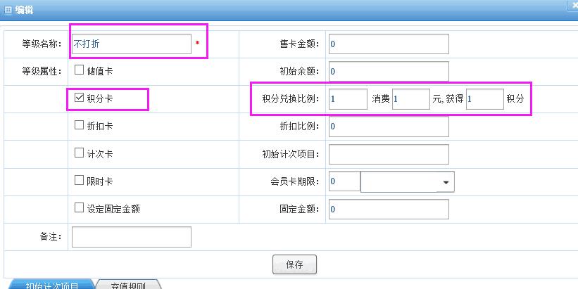 以上设置主要特点在于普通客户消费时,能够有效的记录信息,将散客以会员的方式进行管理,散客达到条件成一会员时,之前的积分同样可以通用,而无需手动去增加,以上设置可以在积分的分配方面一商节省大量的时间,可以省去频繁的操作来减少失误,一劳永逸。