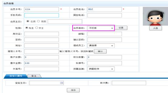 3.然后需要正常录入会员资料,会员开卡时选择会员等一不享受折扣的别,其他选项根据实际情况填写。