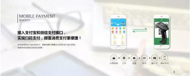 移动支付:接入支付宝和微信支付接口,实现扫码支付,顾客消费支付更便捷!