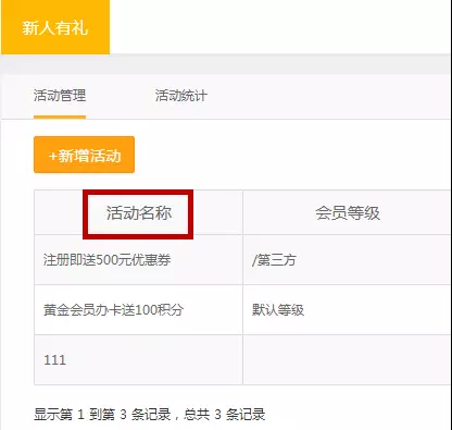 在【营销】→【营销中心】→【活动营销】→【新人有礼】界面中,有一个针对新客户的新人有礼功能,在这个功能中,可以通过3种活动达到营销的目的: