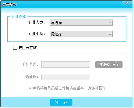选择好行业分类之后,勾选“启用云存储”。然后,在下方输入手机号码,点击发送验证码,然后会收到一条署名“会员通”的短信,填入收到的验证码,点击保存即可启用云存储。