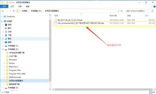 通常情况下,软件的默认安装路径是D盘,所以会在D盘生成一个“会员软件数据备份”的文件夹用于存储数据,如下图。