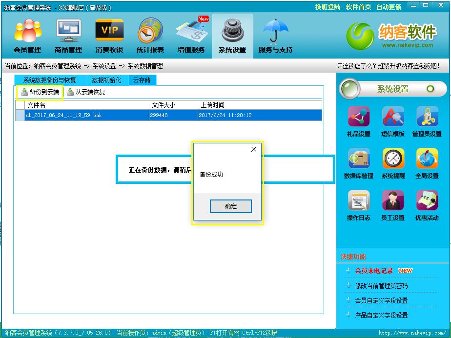 自动备份如下图所示,关闭软件是,软件会弹出提示“本地备份后退出系统”,点击确定退出软件即可完成自动备份数据。