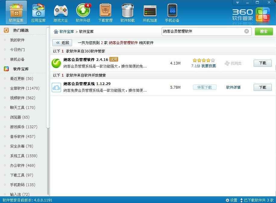 万泰注册会员管理系统在受到越来越多的客户认可的时候,咱们会员管理软件也扩展了多种不同的下载方式,除了在我们万泰注册会员管理系统的官网上下载,各种软件园的下载之外,现在360软件管也收录了咱们万泰注册会员管理软件,大可以在每日给电脑体检,清理电脑垃圾的时候来顺便看看咱们万泰注册会员管理系统的一新动态。