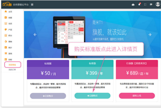 2、选择标准版,点击立即购买,付款成功即可开通标准版